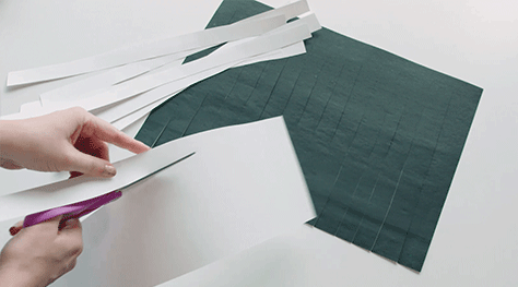 Dye the frottage piece of paper a different colour to the crayons selected, so the crayon rubbings will stand out. Liquid or powder dye can be used. Let the paintings dry, then cut the paper into even strips that can be weaved. For younger students, the teacher should do this, however older students could rule lines on the back of the paper and cut the strips themselves.