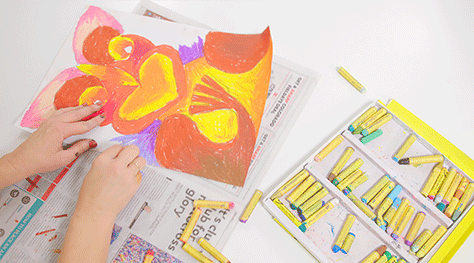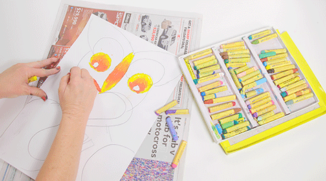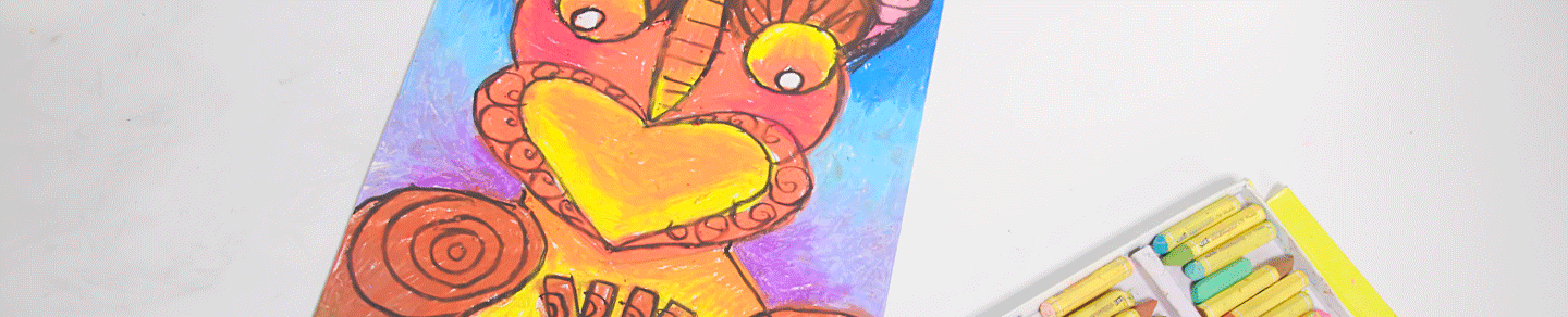 Use the warm colours for the poupou, blending colours light to dark, creating a thick coverage of pastel.