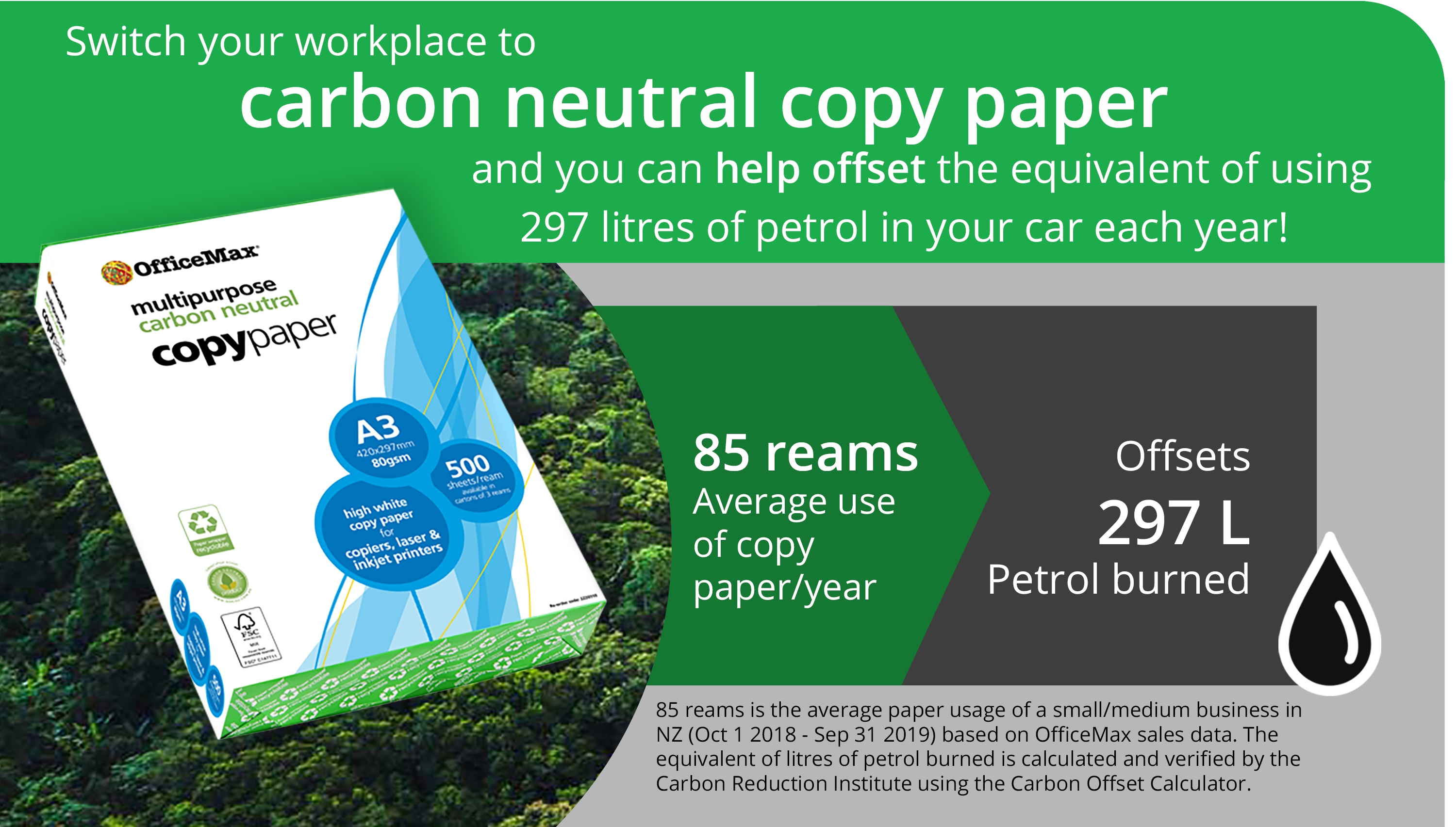 Every purchase of OfficeMax's Carbon Neutral Copy Paper has helped towards offsetting more than 102,000 tonnes of CO2e. That's equal to removing over 28,000 cars from the road!^